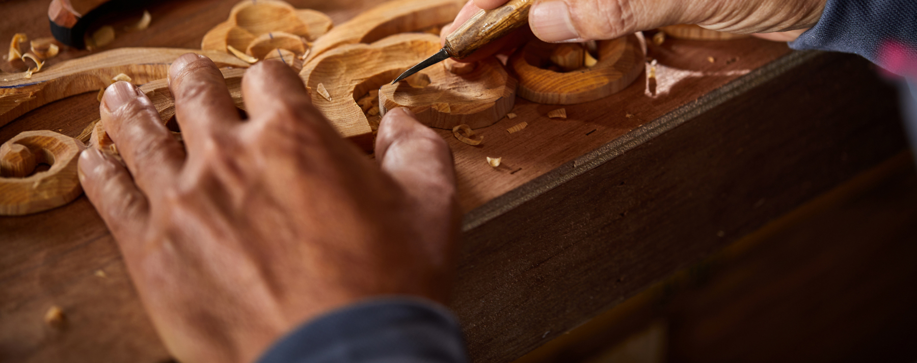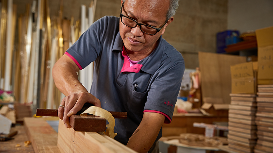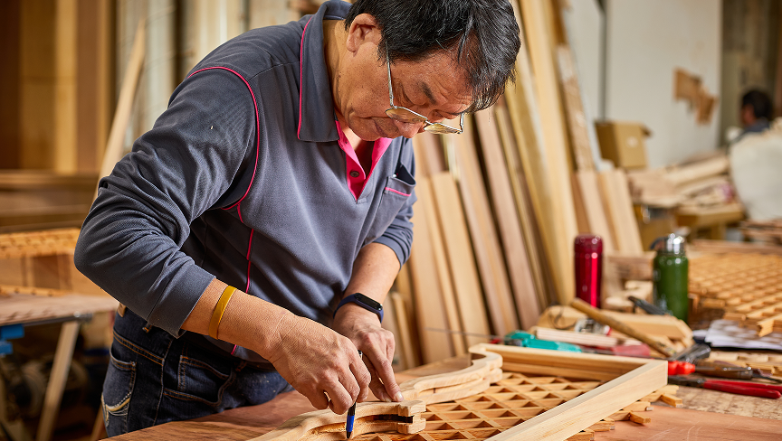 細部にまでこだわり抜いた手作業。特に木材の選別から彫刻まで、目で見て確認しながら進める職人のこだわりをご紹介します。